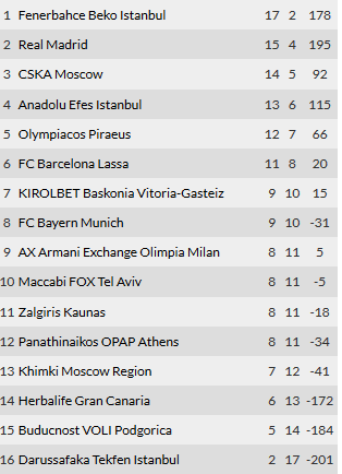 Με τη νίκη του Ολυμπιακού απέναντι στη Χίμκι και την ήττα του Παναθηναϊκού από την Ζαλγκίρις στο Κάουνας ολοκληρώθηκε η 19η αγωνιστική της Ευρωλίγκας. Δείτε τα αποτελέσματα και την κατάταξη: