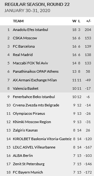 Με τον Ολυμπιακό να επικρατεί της Μπασκόνια ξεκίνησε η 22η αγωνιστική της Ευρωλίγκας. Σειρά παίρνει ο Παναθηναϊκός που κοντράρεται στην Ισπανία με την Βαλένθια.