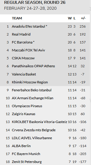 Με τον Ολυμπιακό να γνωρίζει την ήττα από την Μακάμπι Τελ Αβίβ συνεχίστηκε η 26η αγωνιστική της Ευρωλίγκας. Ο Παναθηναϊκός είχε χάσει την Δευτέρα (24/2) από τη Ρεάλ στη Μαδρίτη.