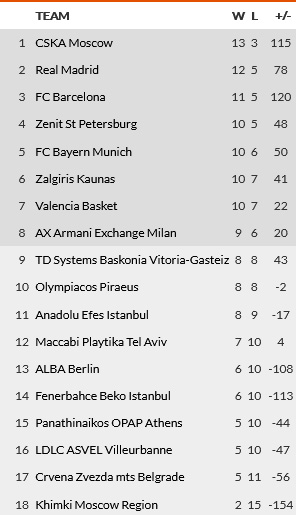 Με τον Ολυμπιακό να κερδίζει στη Μόσχα τη Χίμκι ξεκίνησε η 17η αγωνιστική της Ευρωλίγκας. Σειρά παίρνει ο Παναθηναϊκός, ο οποίος αντιμετωπίζει στο Βελιγράδι τον Ερυθρό Αστέρα.