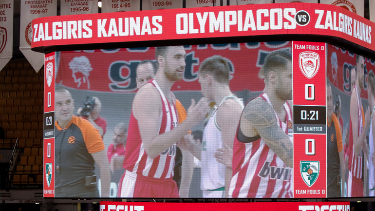 Οι παίκτες του Ολυμπιακού είπαν διαδοχικά «στοπ» στους παίκτες της Ζαλγκίρις, με τον Κώστα Παπανικολάου να προσφέρει το high light του αγώνα με ένα μεγαλοπρεπές κόψιμο στον Εντγκάρας Ουλανόβας.