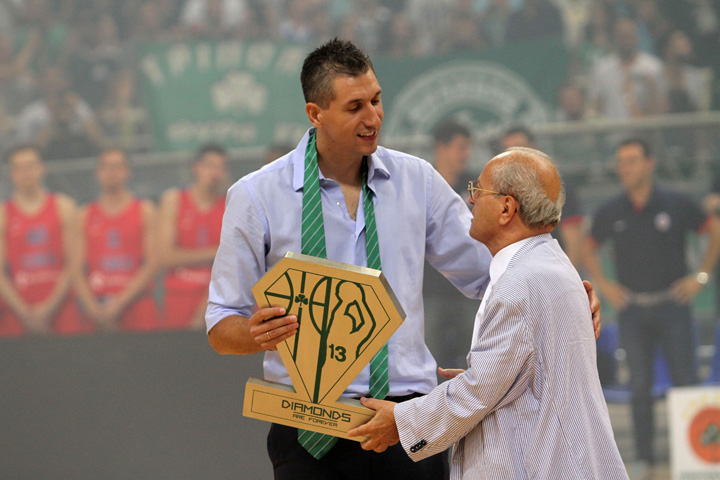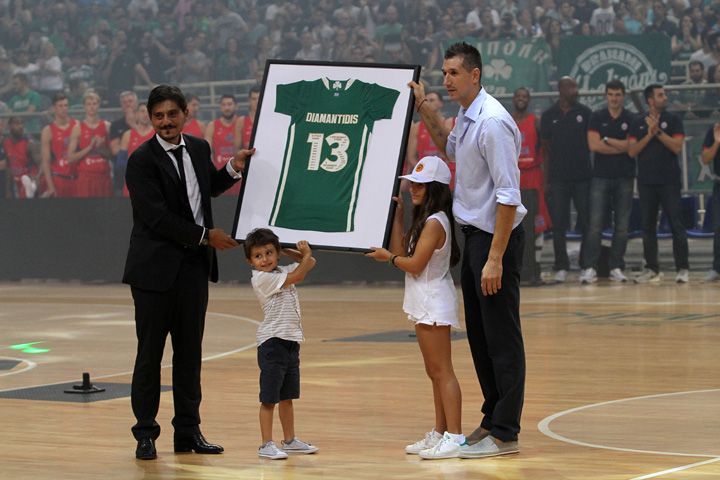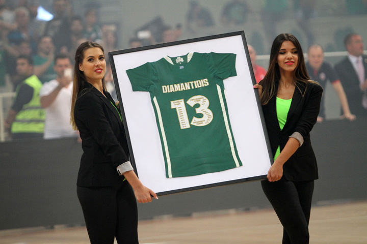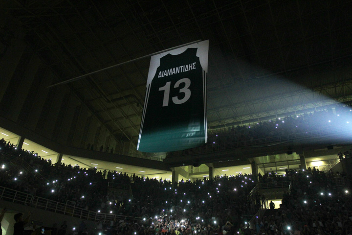 Ο Διαμαντίδης αγωνίστηκε για λίγα δευτερόλεπτα πριν ολοκληρωθεί το πρώτο ημίχρονο του αγώνα με την ΤΣΣΚΑ και στα 13 δεύτερα ο χρόνος σταμάτησε και ακολούθησε η τελετή για την απόσυρση της φανέλα με το «13»!