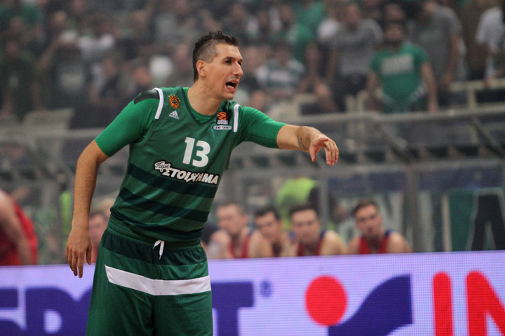 «Καλησπέρα σε όλους. Τελικά είναι πιο εύκολο να παίζεις. Σας ευχαριστώ όλους για όλα αυτά τα χρόνια που ήμουν εδώ. Σας ευχαριστώ για τη στήριξή σας Θέλω να ευχαριστήσω την ΚΑΕ Παναθηναϊκός για την τιμή που μου κάνει αυτές τις τελευταίες ημέρες. Θέλω να ευχαριστήσω προσωπικά την οικογένεια Γιαννακόπουλου. Τον κύριο Παύλο, τον κύριο Θανάση και τον Δημήτρη, και τον Κώστα. Ένα μεγάλο ευχαριστώ σε όλους τους συμπαίκτες που είχα σε αυτή την ομάδα. Τους προπονητές μου. Κάποιους τους αγαπώ πολύ. Μου έδειξαν το δρόμο. Ειδικά ο Κώστας Πιλαφίδης, τον ευχαριστώ και τον αγαπώ πολύ. Θέλω να ευχαριστήσω και τους ανθρώπους του Παναθηναϊκού είναι πίσω από τις κάμερες. Σας αγαπώ πολύ. Σας ευχαριστώ».