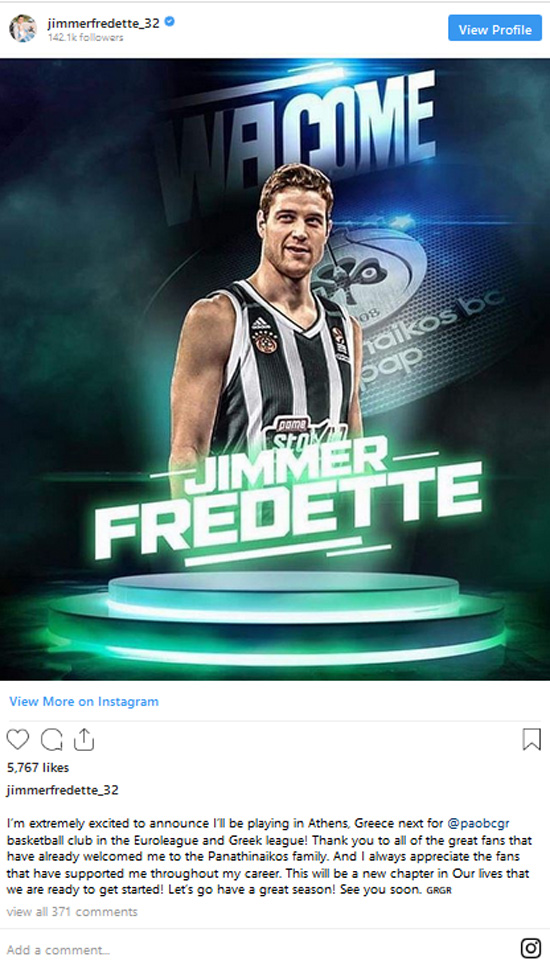 «Είμαι τρομερά ενθουσιασμένος που ανακοινώνω πως θα παίζω στην Αθήνα, στην Ελλάδα για τον Παναθηναϊκό στην Euroleague και την Basket League. Ευχαριστώ τους εξαιρετικούς οπαδούς που με καλωσόρισαν στην οικογένεια του Παναθηναϊκού. Πάντα εκτιμούσα τους οπαδούς που με στηρίζουν στην καριέρα μου. Αυτό θα είναι ένα νέο κεφάλαιο στις ζωές μας και είμαστε έτοιμοι για να ξεκινήσει. Πάμε να έχουμε μια σπουδαία χρονιά. Θα σας δω σύντομα».
