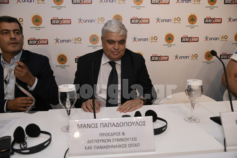 Ο πρόεδρος του Παναθηναϊκού ΟΠΑΠ, Μάνος Παπαδόπουλος, είπε: «Θα ήθελα να εκφράσω τη μεγάλη μας χαρά για αυτή την σπουδαία συνεργασία η οποία είναι πολυετής, προέρχεται και από το παρελθόν και θα ήθελα εδώ να πω ότι είναι σημαντική γιατί συμβολίζει τις μεγάλες εταιρείες, Παναθηναϊκό και ΟΠΑΠ οι οποίες συμπληρώνουν τα 100 και 60 χρόνια λειτουργίας τους αντίστοιχα.