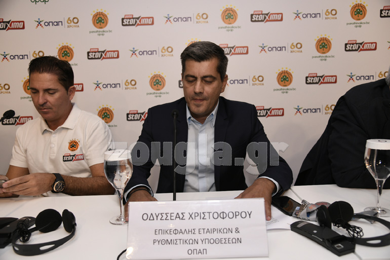 Ο Οδυσσέας Χριστοφόρου, επικεφαλής εταιρικών και ρυθμιστικών υποθέσεων του ΟΠΑΠ, τόνισε: «Με μεγάλη μας χαρά υποδεχόμαστε την Πρωταθλήτρια ομάδα του Παναθηναϊκού και τον κύριο Δημήτρη Γιαννακόπουλο. Η σημερινή εκδήλωση είναι σημαντική όχι μόνο για την ανανέωση της συνεργασίας αλλά και γιατί σηματοδοτεί τη μετονομασία της ομάδας σε ΚΑΕ Παναθηναϊκός ΟΠΑΠ. Από τη μία συμπληρώνονται τα 100 χρόνια του μπασκετικού Παναθηναϊκού και από την άλλη ο ΟΠΑΠ γιορτάζει 60 χρόνια από την ίδρυσή του. Ο Eξάστερος είναι η πιο πετυχημένη ομάδα στην Ελλάδα κι από τις πιο πετυχημένες σε ευρωπαϊκό επίπεδο. Έχει διαφημίσει το ελληνικό μπάσκετ παγκοσμίως. Ο ΟΠΑΠ στηρίζει αδιάλειπτα την οικονομία, την κοινωνία και τον αθλητισμό. Πρόσφατα παραδώσαμε δύο πλήρως καινούρια σχολεία στις περιοχές που επλήγησαν από τις πυρκαγιές. Θα ήθελα να ευχηθώ στους παίκτες και στο προπονητικό τιμ και στη διοίκηση της ομάδα, υγεία, επιτυχίες και ελπίζω του χρόνου τέτοια περίοδο ο Παναθηναϊκός να είναι επτάστερος».