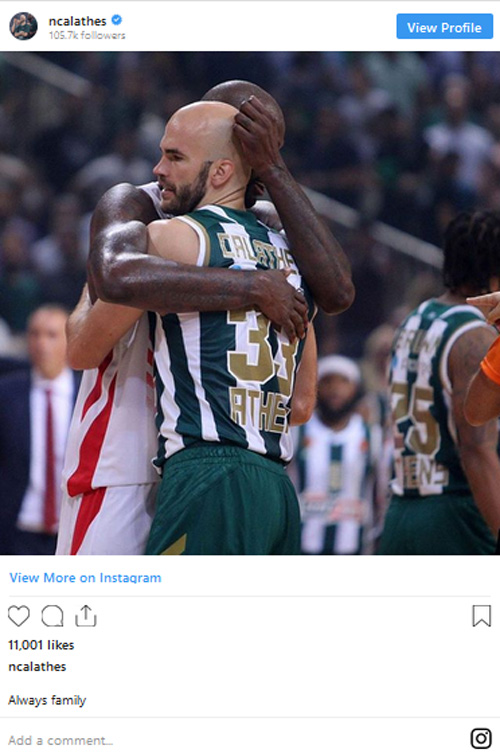 Ο Νικ Καλάθης λίγες ώρες μετά τον αγώνα με τον Ερυθρό Αστέρα ανέβασε στον προσωπικό του λογαριασμό στο instagram, μία φωτογραφία στην οποία απεικονίζεται να αγκαλιάζει τον πρώην συμπαίκτη του και νυν άσο των Σέρβων, γράφοντας χαρακτηριστικά: «Για πάντα οικογένεια…»