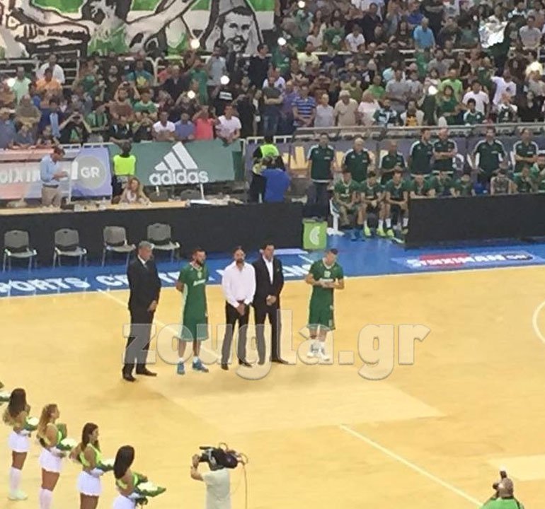 Οι Διαμαντίδης, Μποντιρόγκα, Αλβέρτης, Φώτσης, Βρανκοβιτς μόλις έκαναν την εμφάνισή τους στο παρκέ γνώρισαν την αποθέωση από τους φίλους της ομάδας, ενώ για καθέ ένα ξεχωριστά η ΚΑΕ είχε ετοιμάσει video που προβλήθηκε με τις καλύτερες στιγμές τους στον εξάστερο.