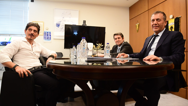 Την Τετάρτη (4/6) οι διοικητικοί ηγέτες των δύο «αιωνίων» του ελληνικού μπάσκετ πέρασαν το κατώφλι του Υπουργείου Παιδείας, Θρησκευμάτων και Αθλητισμού, όπου συναντήθηκαν με τον Γιάννη Βρούτση, σε μία προσπάθεια να αποκλιμακωθεί η ένταση των τελευταίων ημερών και να συνεχιστούν κανονικά οι τελικοί της Basket League.