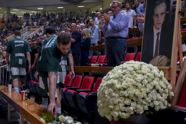 Πριν το τζάμπολ στον τρίτο τελικό της Basket League, ανάμεσα στον Παναθηναϊκό και τον Ολυμπιακό οι παίκτες των «πράσινων» αλλά και το προπονητικό τιμ αποχαιρέτησαν τον Παύλο Γιαννακόπουλο.