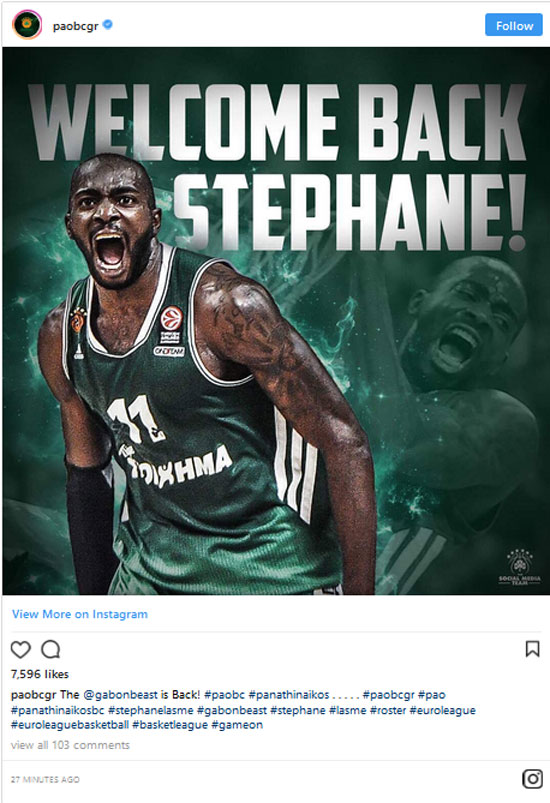 Ο μπασκετικός Παναθηναϊκός «καλωσόρισε» τον Στεφάν Λάσμε, ο οποίος μετά από τέσσερα χρόνια… περιπλάνησης σε Τουρκία (Αναντολού Εφές, Γαλατασαράι), ΗΠΑ (Τέξας Λέτζεντς) και Ρωσία (Ούνιξ Καζάν) επιστρέφει στους πρωταθλητές Ελλάδας.