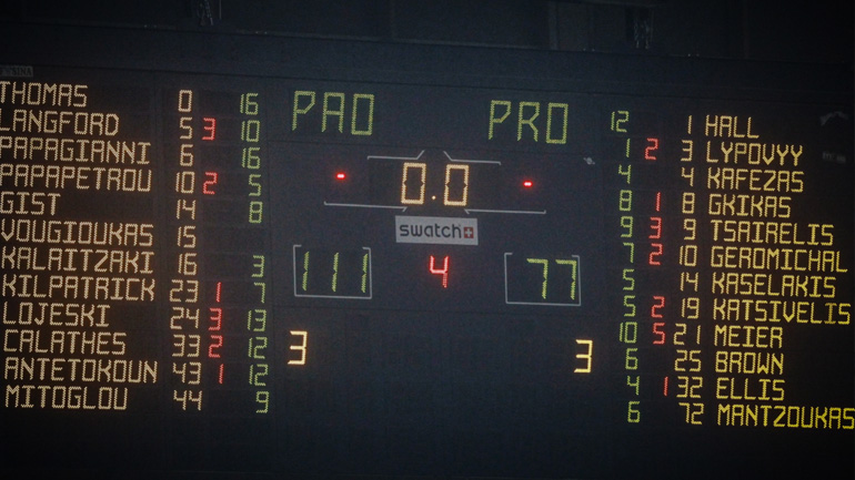 ΠΑΝΑΘΗΝΑΙΚΟΣ (Πιτίνο): Παπαγιάννης 16 (7/9 δίποντα, 9 ριμπάουντ, 2 μπλοκ), Παπαπέτρου 5 (6 ριμπάουντ), Καλάθης 12 (3/5 δίποντα, 2/4 τρίποντα, 9 ασίστ), Τόμας 16 (8/12 δίποντα, 5 ριμπάουντ, 3 ασίστ), Κιλπάτρικ 7 (1), Λοτζέσκι 13 (3), Γκιστ 8 (5 ριμπάουντ), Καλαϊτζάκης 3 (1), Βουγιούκας, Μήτογλου 9 (1), Αντετοκούνμπο 12 (6/6 δίποντα), Λάνγκφορντ 10 (1 τρίποντο, 3 ριμπάουντ, 4 ασίστ)