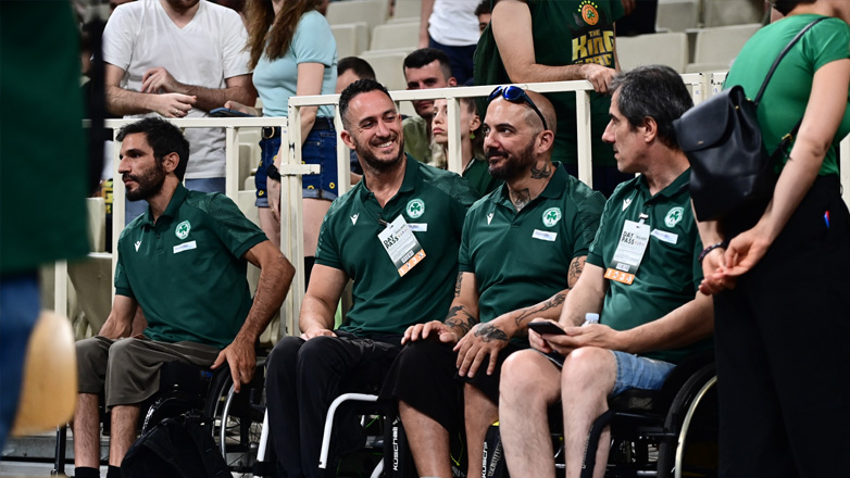 Περίπου 40 λεπτά πριν από το πρώτο τζάμπολ του τρίτου τελικού, η ομάδα μπάσκετ με αμαξίδιο του «τριφυλλιού» έκανε την είσοδό της στο κλειστό και μόλις έγινε αντιληπτή από τον κόσμο του Παναθηναϊκού αποθεώθηκε.