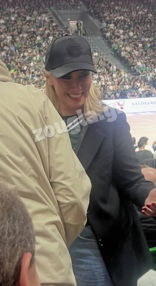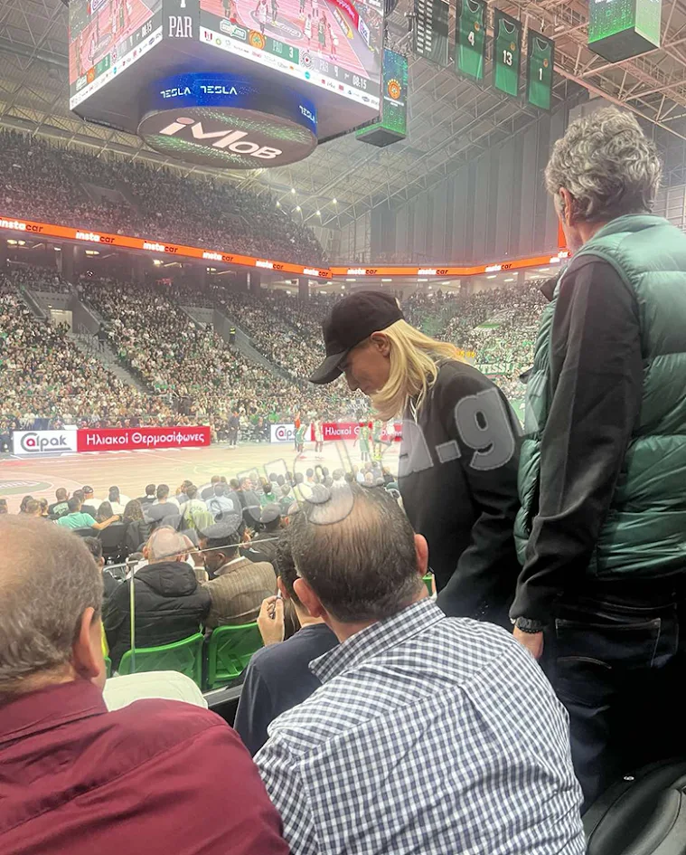 Άργησε, αλλά δεν λησμόνησε η Σία Κοσιώνη, η οποία, αν και με κάποια λεπτά καθυστέρηση, πήρε θέση για να παρακολουθήσει διά ζώσης το ματς
