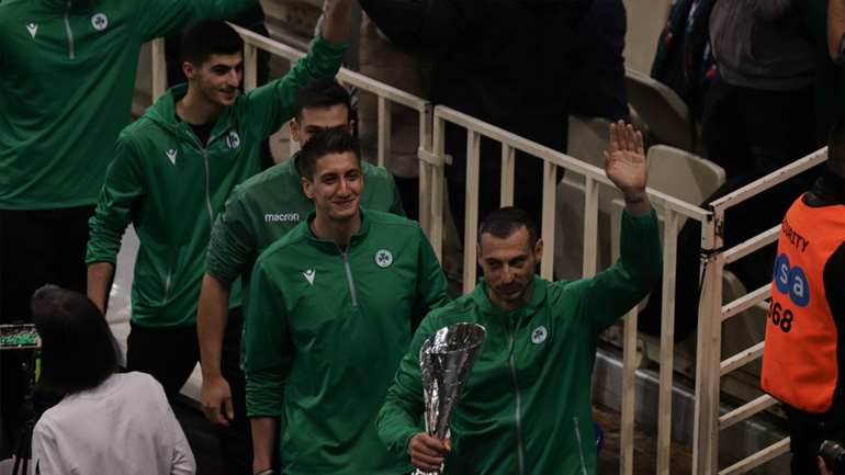 Σύσσωμη ομάδα του Δημήτρη Ανδρεόπουλου, η οποία ήταν επίσημη προσκεκλημένη της «πράσινης» ΚΑΕ, αποθεώθηκε από τους φιλάθλους του συλλόγου για τον θρίαμβο της επί του Ολυμπιακού και την επιστροφή της στα τρόπαια μετά από 10 χρόνια.