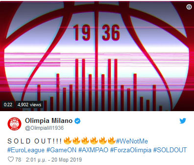 Ούτε… καρφίτσα δεν θα πέφτει στο «Paladesio» στον αγώνα ανάμεσα στην Αρμάνι Μιλάνο και τον Παναθηναϊκό την Παρασκευή για την 28η αγωνιστική της Ευρωλίγκας.