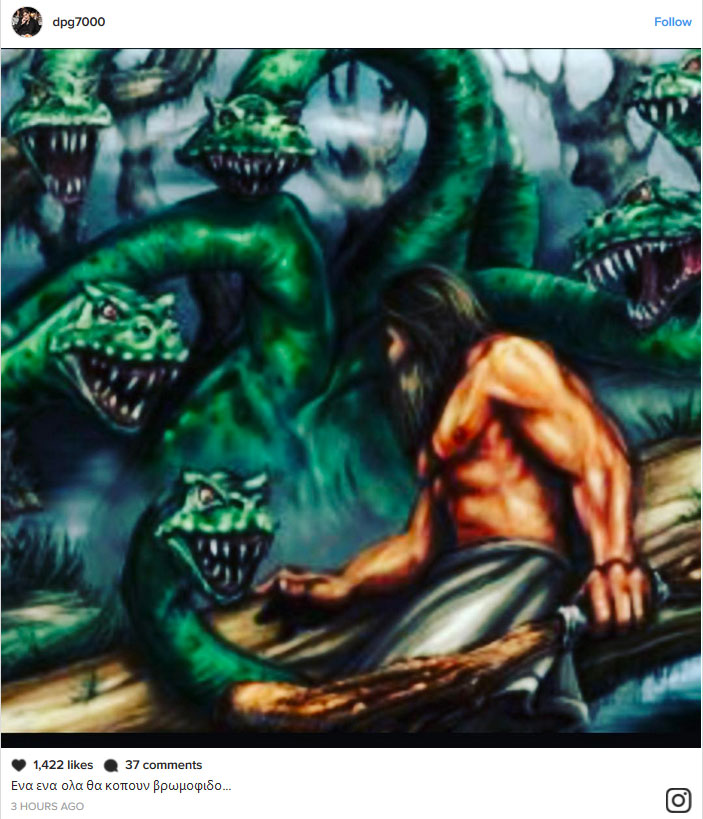 Ένα αινιγματικό ποστ, με μία φωτογραφία στην οποία υπάρχει μία ζωγραφιά και δείχνει έναν άνθρωπο να παλεύει με πολλά φίδια, έκανε ο Δημήτρης Γιαννακόπουλος.
