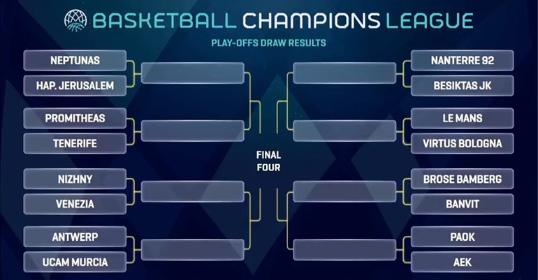 Ο «εμφύλιος» δεν αποφεύχθηκε στους «16» του Basketball Champions League. Ο ΠΑΟΚ θα αντιμετωπίσει την ΑΕΚ, με το πρώτο ματς να διεξάγεται στην Πυλαία και τη ρεβάνς στο ΟΑΚΑ. Τη χειρότερη δυνατή κλήρωση είχε ο Προμηθέας, που αντιμετωπίζει την Τενερίφη, πρώτα στην Πάτρα και κατόπιν στην Ισπανία.