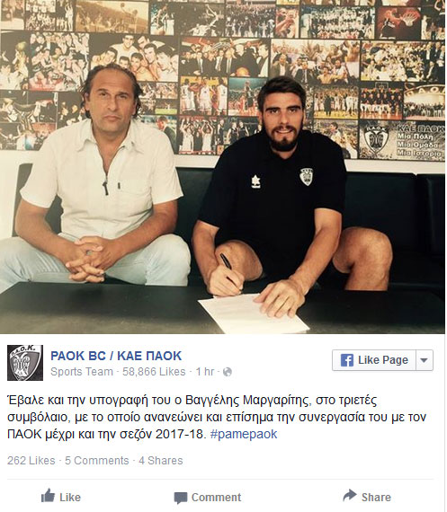Την υπογραφή του στο νέο του συμβολαιο με τον ΠΑΟΚ μέχρι το 2018 έβαλε τη Δευτέρα ο Βαγγέλης Μαργαρίτης.