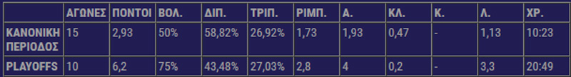 Τα στατιστικά του Ζώη Καράμπελα στην Α1 Ανδρών 2018-19: