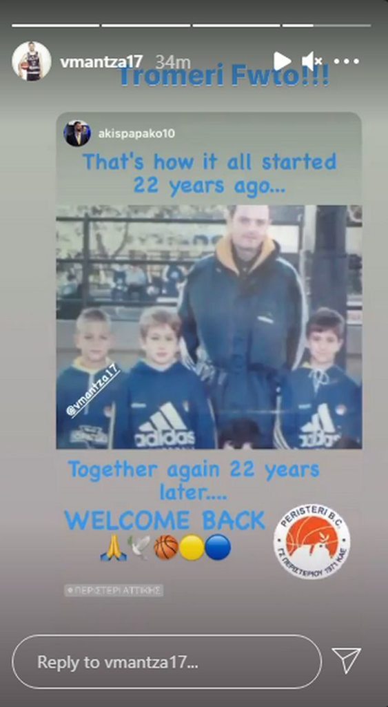 Με μία φωτογραφία από τότε που ως παιδί αγωνιζόταν στις ακαδημίες του Περιστερίου επιβεβαίωσε ο Γιώργος Μάντζαρης την επιστροφή του στην ομάδα των δυτικών προαστίων.