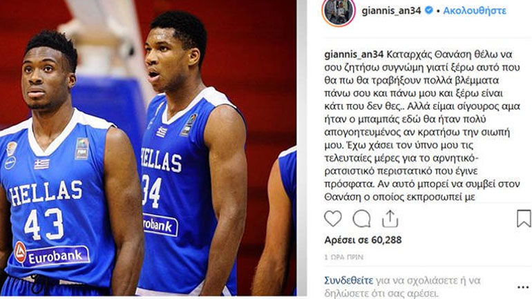 Η ανάρτηση του Γιάννη Αντετοκούνμπο: