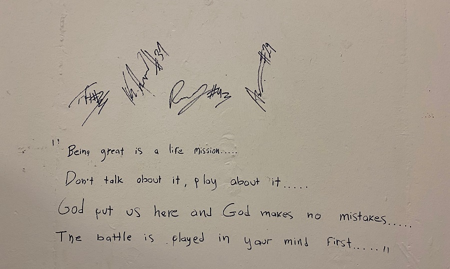 Ένα ξεχωριστό μήνυμα άφησαν στον τοίχο των αποδυτηρίων στο Στάδιο Ειρήνης και Φιλίας τα αδέρφια Αντετοκούνμπο.