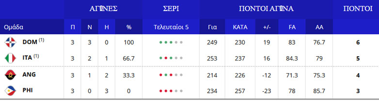 Δ’ ΟΜΙΛΟΣ (4ος – Μανίλα – Mall of Asia Arena)