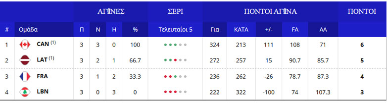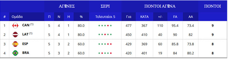 - 84| Καναδάς – Σλοβενία (Γήπεδο Mall of Asia Arena, Φιλιππίνες – Novasports)