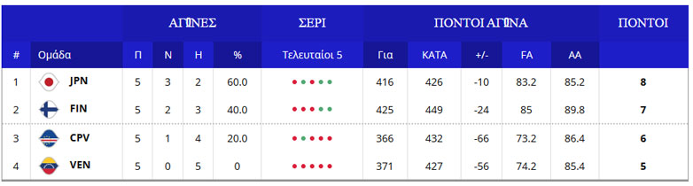 Ιαπωνία – Πράσινο Ακρωτήρι 80-71