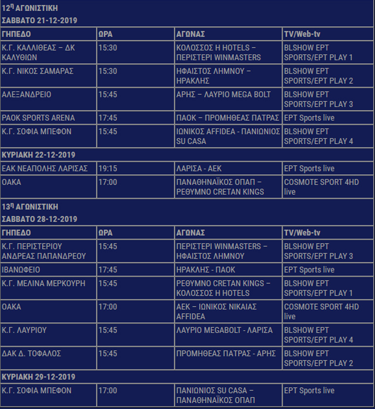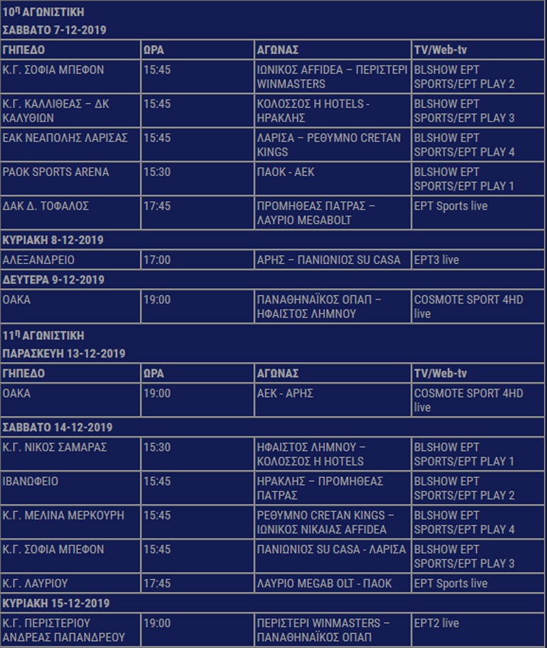 Το αγωνιστικό και τηλεοπτικό πρόγραμμα από την 10η έως την τελευταία αγωνιστική του πρώτου γύρου της κανονικής περιόδου της EKO Basket League...