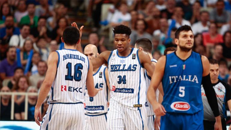 ΕΛΛΑΔΑ (Θανάσης Σκουρτόπουλος): Λαρεντζάκης 11 (1), Αθηναίου 2, Καλάθης 11 (3), Μπουρούσης 8, Σλούκας, Παπαγιάννης 2, Πρίντεζης 12, Παπανικολάου, Παπαπέτρου 8, Βασιλόπουλος 3 (1), Αντετοκούνμπο Γ. 18, Αντετοκούνμπο Θ. 8