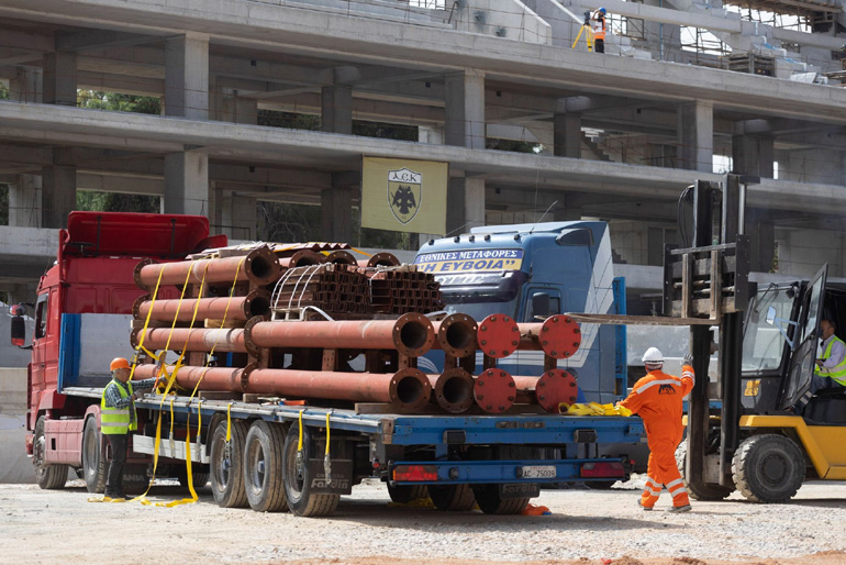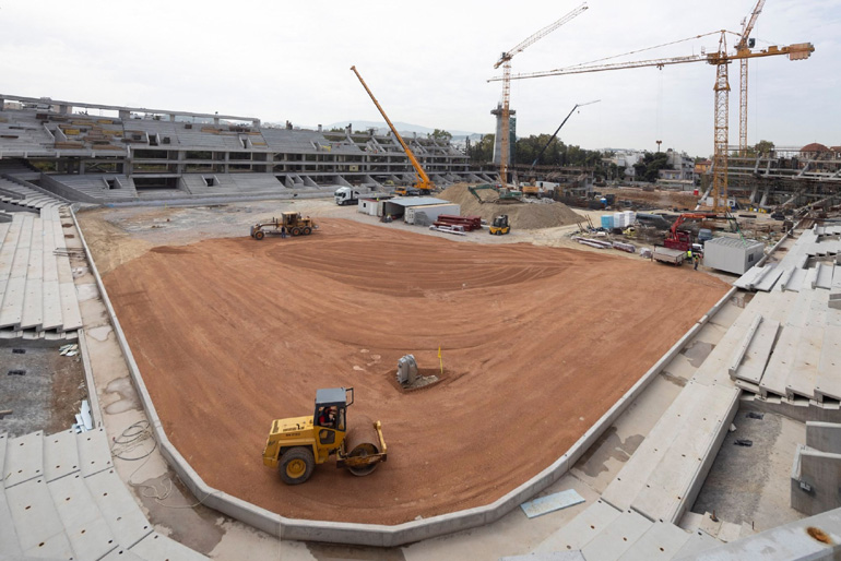 «Συνεχίζεται με αμείωτους ρυθμούς στο εργοτάξιο του γηπέδου μας η προεργασία για τη διαδικασία εγκατάστασης του στεγάστρου με την προετοιμασία του εδάφους, προκειμένου να έρθουν οι ειδικοί γερανοί, την ολοκλήρωση των υποδομών στις εξέδρες και βεβαίως με την τοποθέτηση των πύργων, πάνω στους οποίους αρχικά θα συναρμολογηθεί το στέγαστρο μέχρι την τελική του τοποθέτηση.