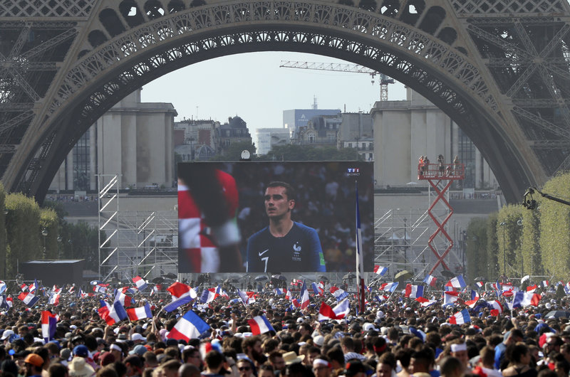 Πραγματικά η χώρα «πλημμύρισε» από τον Πύργο του Άιφελ ως την Αψίδα του Θριάμβου, με το πλήθος να γιορτάζει τη μεγάλη επιτυχία του αντιπροσωπευτικού συγκροτήματος της χώρας στη διοργάνωση της Ρωσίας.