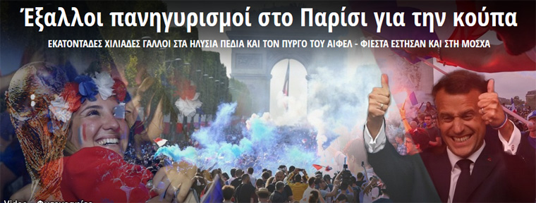 Το Παγκόσμιο Κύπελλο Ποδοσφαίρου ολοκληρώθηκε χθες σε μια γιορτινή ατμόσφαιρα στη Μόσχα, με το τελευταίο ντέρμπι για την κατάκτηση του τροπαίου να αναδεικνύει νικήτρια την ομάδα της Γαλλίας, η οποία «κονταροχτυπήθηκε» με την Κροατία για την πολυπόθητη «κούπα».