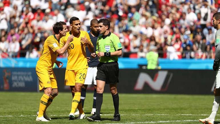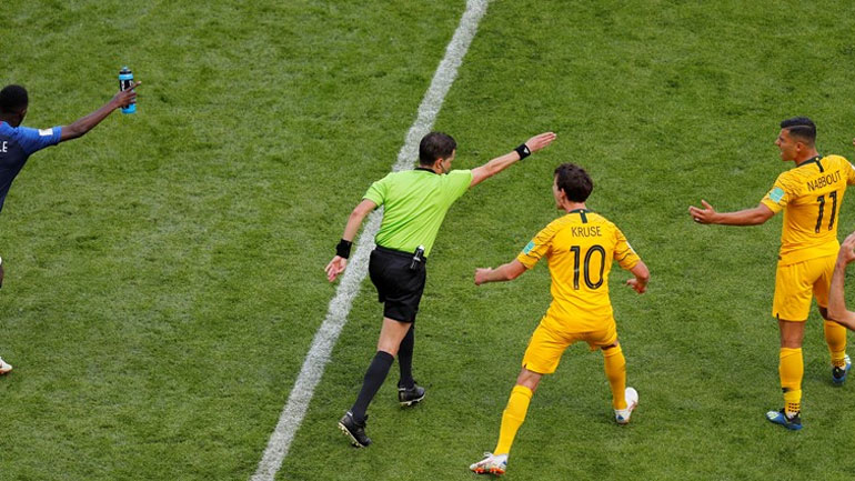 Πάντως η απάντηση των «κανγκουρό» ήρθε πέντε λεπτά αργότερα: ο Ουμτιτί βρήκε την μπάλα με το χέρι εντός περιοχής ο διαιτητής καταλόγισε πέναλτι και ο Γέντινακ ισοφάρισε από την «άσπρη βούλα».