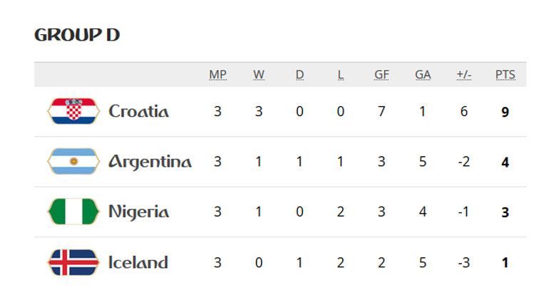 Οι Κροάτες, όμως, δεν σταμάτησαν να πιέζουν και στο 90΄ ο Πέρισιτς ήταν αυτός που πέτυχε το γκολ της νίκης, δίνοντας τέλος στα όνειρα πρόκρισης των Ισλανδών, που κατέλαβαν την τέταρτη και τελευταία θέση του ομίλου.