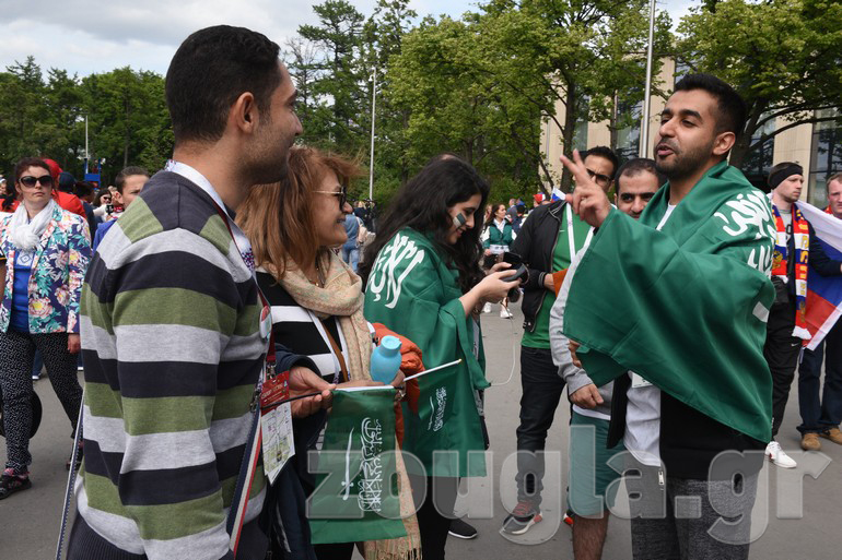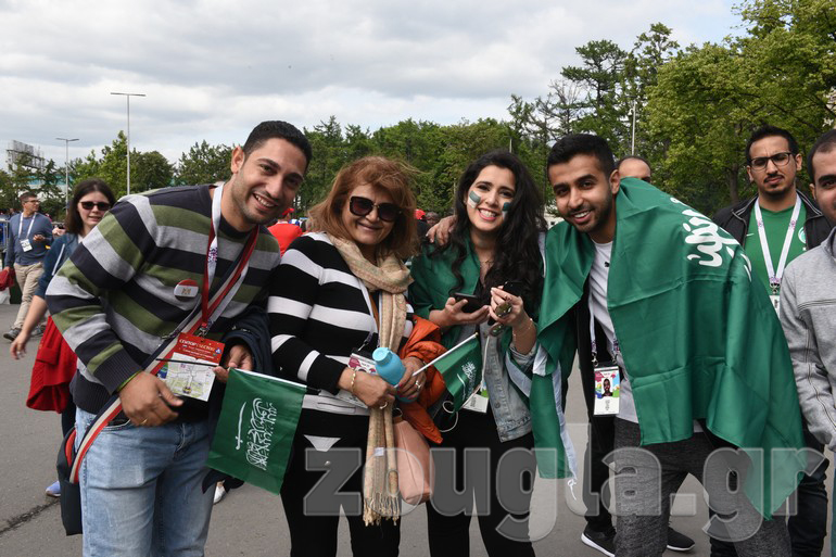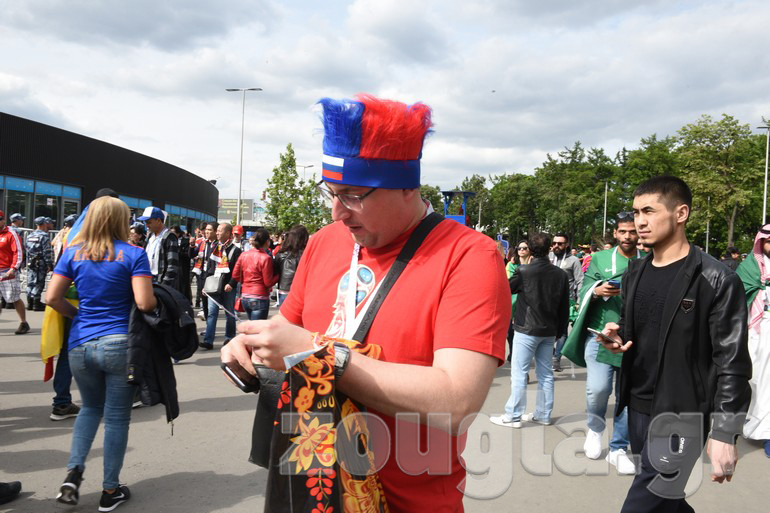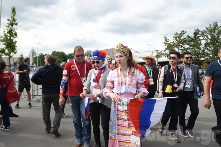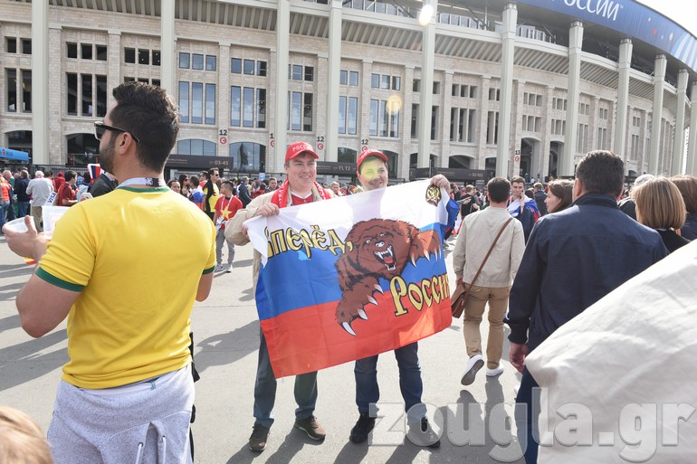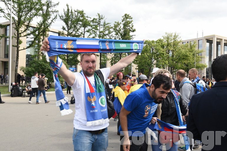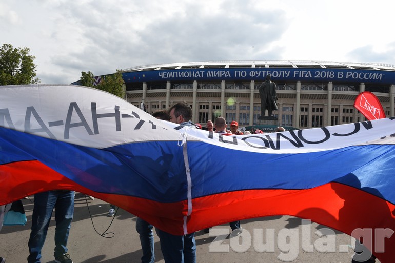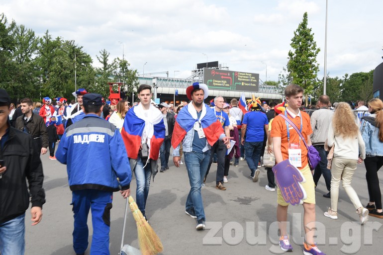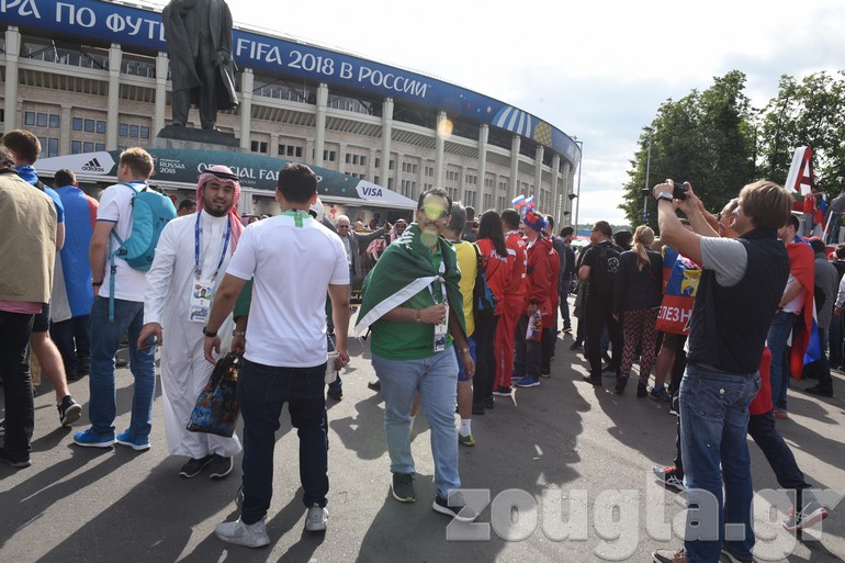 Δείτε φωτογραφίες και βίντεο που κατέγραψε ο φακός του απεσταλμένου του zougla.gr, Βασίλης Κουτρουμάνος, έξω από το στάδιο «Luzhniki» λίγα λεπτά πριν ξεκινήσει η φαντασμαγορική τελετή έναρξης του παγκόσμιου event και ο εναρκτήριος αγώνας της διοργάνωσης, ανάμεσα στην «οικοδέσποινα» και τη Σαουδική Αραβία.