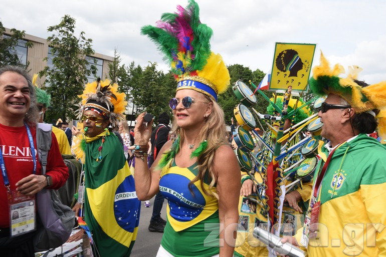 Επισκέπτες από όλες τις γωνιές του κόσμου με φανταχτερές ενδυμασίες, χαμόγελα και βεβαίως ελπίδες για την εθνική τους ομάδα.