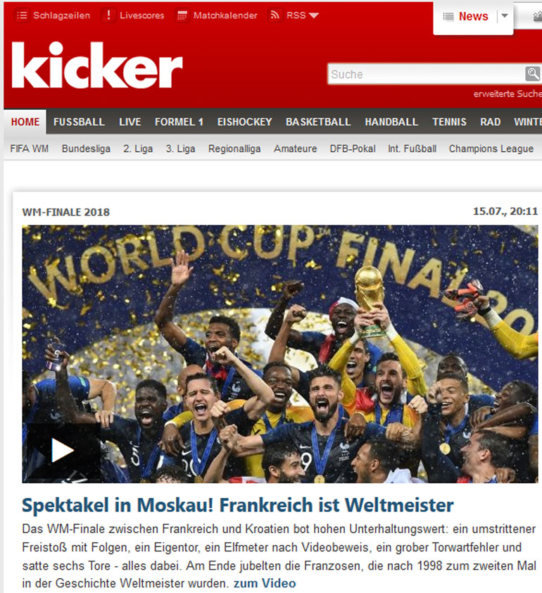 Kicker (Γερμανία): «Θέαμα στη Μόσχα! Η Γαλλία παγκόσμια πρωταθλήτρια»