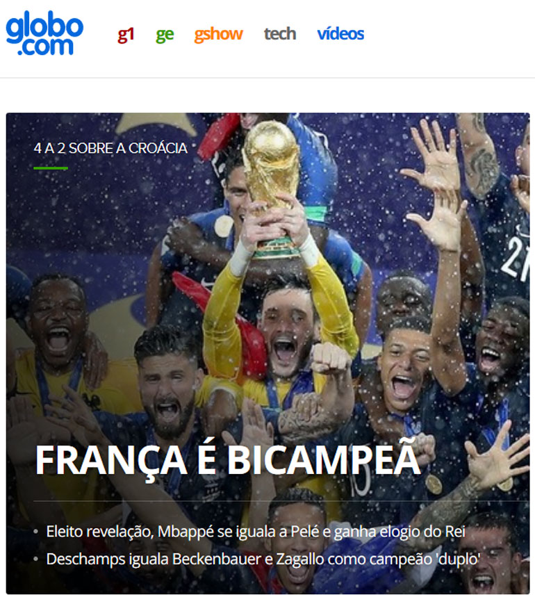 Globo (Βραζιλία): «Δις παγκόσμια πρωταθλήτρια η Γαλλία»