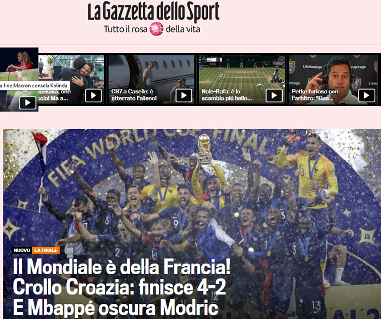Gazzetta dello Sport (Ιταλία): «Το Μουντιάλ είναι της Γαλλίας!»