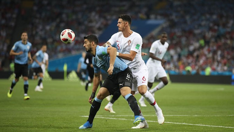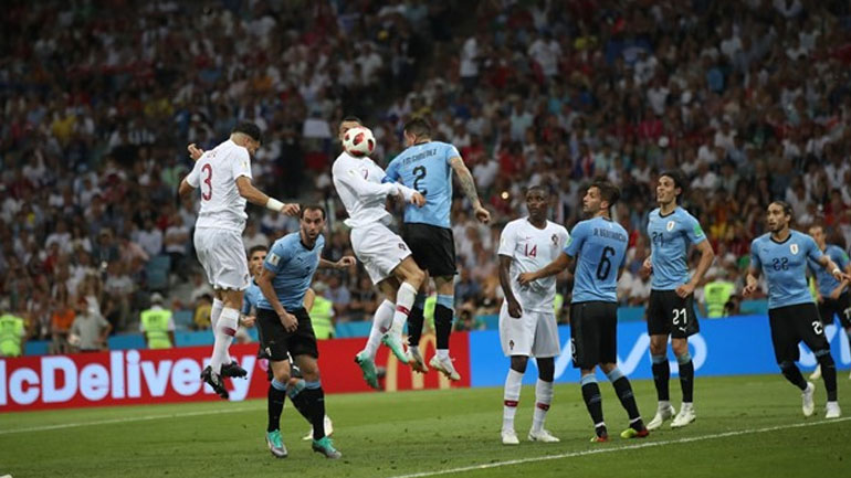 Στην επανάληψη η Πορτογαλία κατάφερε στο 55΄ να φέρει το ματς στα ίσα με κεφαλιά του Πέπε μέσα στην μικρή περιοχή από σέντρα του Γκερέιρο και ισοφάρισε σε 1-1, με την άμυνα της Ουρουγουάης να δέχεται το πρώτο τέρμα της στο μουντιάλ.