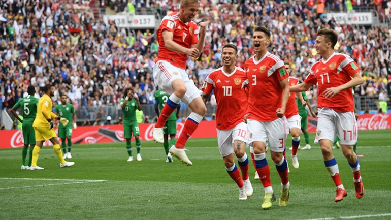 Θριαμβευτική εκκίνηση στο 21ο Παγκόσμιο Κύπελλο έκανε η «οικοδέσποινα» της διοργάνωσης, καθώς πραγματοποίησε επίδειξη δύναμης απέναντι στη Σαουδική Αραβία στο κατάμεστο «Λουζνίκι» της Μόσχας, παρουσία του Βλαντίμιρ Πούτιν.