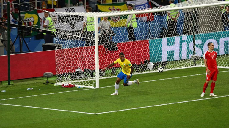 Η Βραζιλία επικράτησε με 2-0 της Σερβίας την Τετάρτη στη Μόσχα και προκρίθηκε ως πρώτη του 5ου ομίλου στη φάση των 16 του Μουντιάλ.