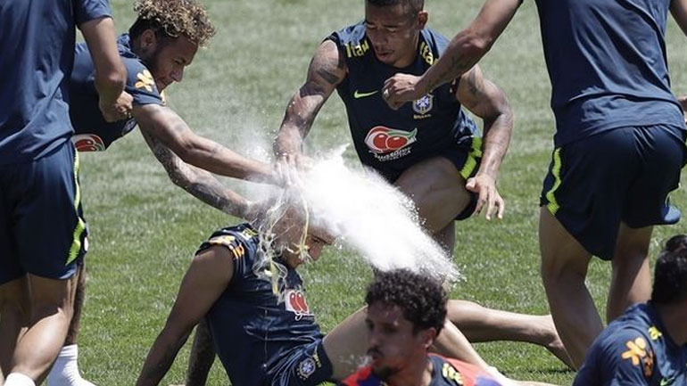 Πιο συγκεκριμένα, οι Βραζιλιάνοι διεθνείς με… μπροστάρηδες τους Νεϊμάρ και Γκαμπριέλ Ζεζούς, πήραν αυγά και αλεύρι και τα έριξαν στο κεφάλι του άσου της Μπαρτσελόνα, ο οποίος ωστόσο δεν έχασε το χαμόγελό του.