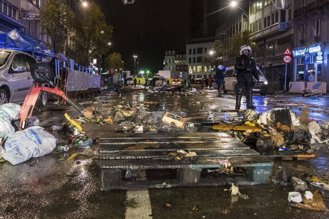 Πλάνα τα οποία έχουν αναρτηθεί σε μέσα κοινωνικής δικτύωσης και έχουν αναπαραχθεί από τα βελγικά μέσα δείχνουν κάδους να καίγονται και ένα άδειο όχημα το οποίο είναι αναποδογυρισμένο στη μέση του δρόμου. Η αστυνομία προσπάθησε να διαλύσει το πλήθος ρίχνοντας νερό υπό πίεση, ενώ απαγόρευσε την κυκλοφορία σε πολλούς δρόμους.