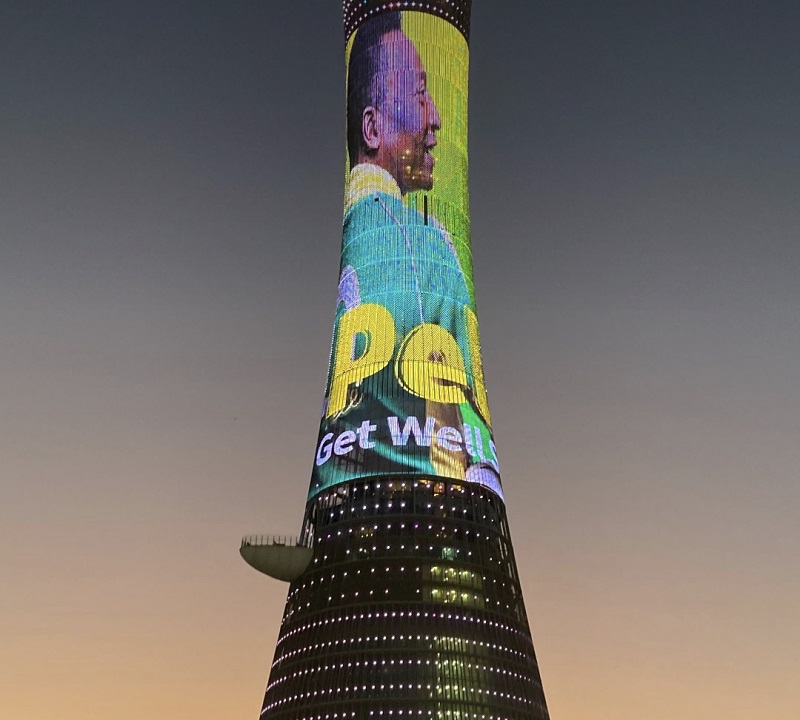 Γύρω από το στάδιο «Lusail», στα βόρεια της πόλης, όπου θα διεξαχθεί ο τελικός, και στον περίφημο «Aspire Tower», όχι μακριά από το στάδιο «Khalifa», δεσπόζει μια εικόνα του Πελέ, στην οποία φοράει την πράσινη φανέλα με το περίφημο Νο10, ενώ ακολουθεί η ευχή «Να γίνεις καλά σύντομα».