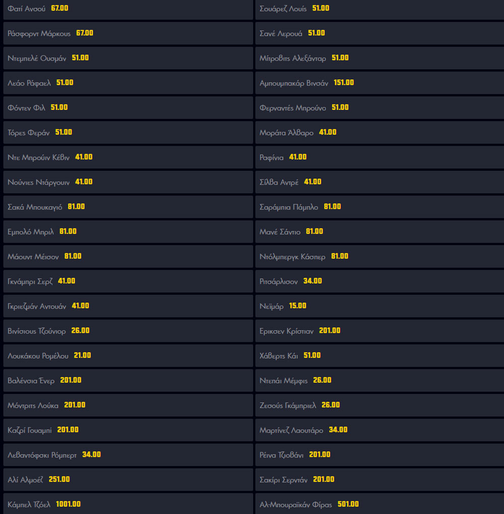 Οι Κέιν (8.00), Εμπαπέ (9.00), Μέσι (10.00), Μπενζεμά (12.00), Κριστιάνο Ρονάλντο (13.00) και Νεϊμάρ (15.00) είναι σύμφωνα με τις στοιχηματικές εταιρείες τα πρώτα φαβορί στη σχετική λίστα.