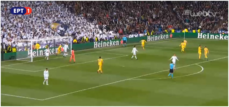 μετά την αναπήδησή της από την κεφαλιά-πάσα τού Ρονάλντο.